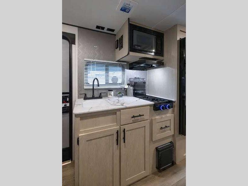 Sleeps 3 Length 23 ft 1 in Ext Width 8 ft Ext Height 10 ft 10 in Hitch Weight 532 lbs GVWR 4797 lbs Dry Weight 4923 lbs Cargo Capacity 3787 lbs Fresh Water Capacity 39 gals Grey Water Capacity 30 gals Black Water Capacity 30 gals Available Beds RV Queen Refrigerator Size 8 cu ft Cooktop Burners 2 LP Tank Capacity 20 lbs. Water Heater Type Tankless AC BTU 8000 btu Axle Count 1 Number of LP Tanks 1 Shower Type Standard Similar Floorplans