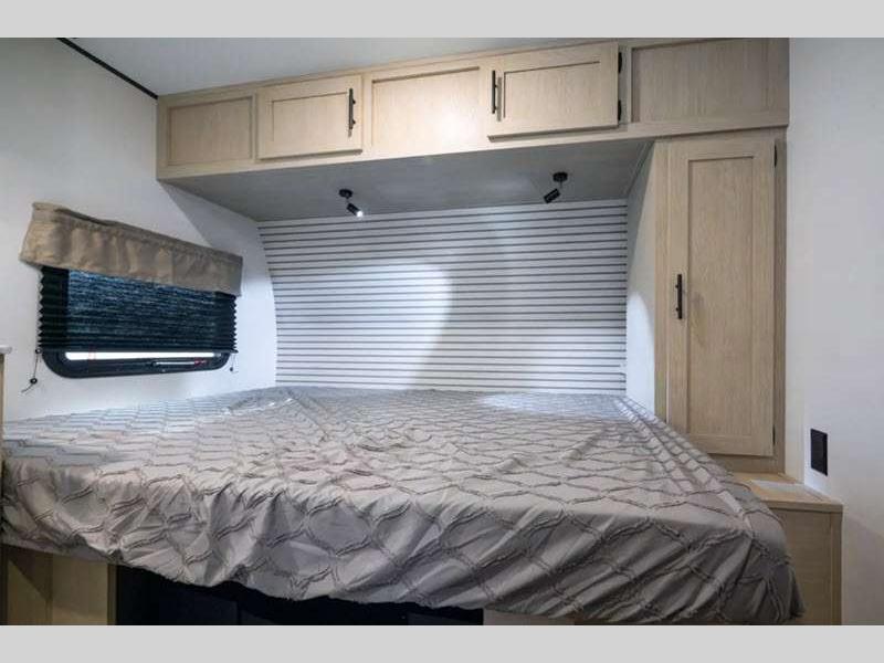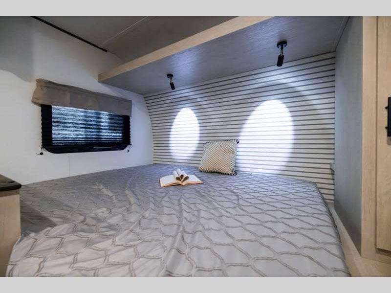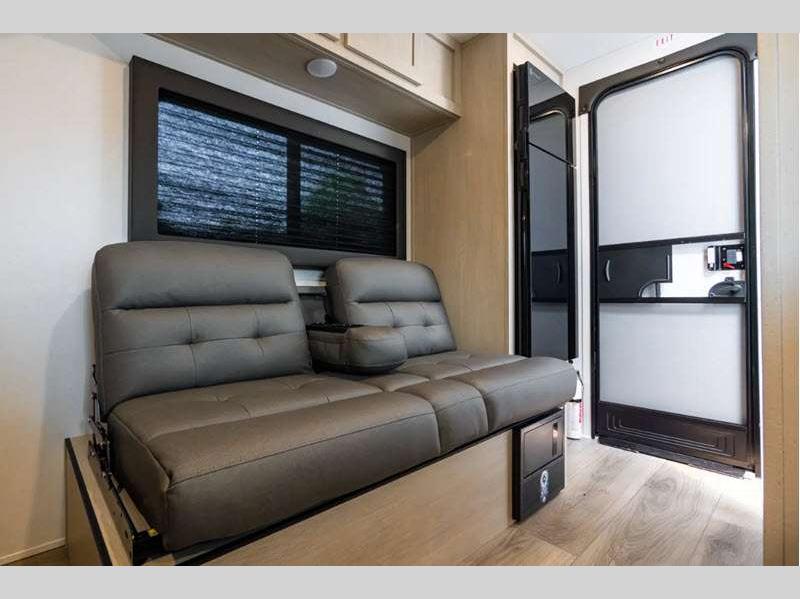 Each model includes an Aerodynamic radius front profile that will help with high-speed stability while on the road along with reduced structural fatigue, and you might even want to add the optional power tongue jack in place of the manual jack for even more convenience. Inside, you´ll find decorative backsplash, LED lighting and the USB charging stations throughout will help keeping your gadgets charged for your adventures.