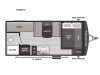 Sleeps 5 Length 21 ft 4 in Ext Height 10 ft 5 in Hitch Weight 425 lbs Dry Weight 3485 lbs Cargo Capacity 1340 lbs Fresh Water Capacity 37 gals Grey Water Capacity 30 gals Black Water Capacity 30 gals Tire Size ST225/75R15D Furnace BTU 20000 btu Number Of Bunks 2 Available Beds Queen Refrigerator Type Large Double Door 12V Refrigerator Size 8 cu ft Cooktop Burners 2 Number of Awnings 1 LP Tank Capacity 20 lbs Water Heater Type Girard Tankless AC BTU 13500 btu Axle Count 1 Number of LP Tanks 1 Shower Type Standard Similar Floorplans